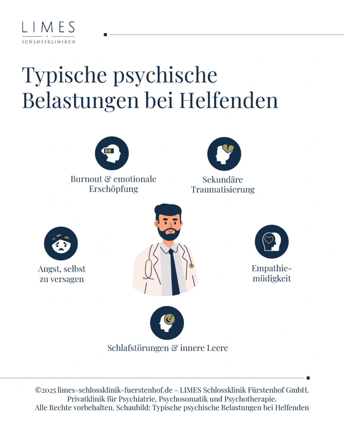 Ärzte, die regelmäßig mit schwerem Leid, Tod oder traumatisierten Patienten arbeiten, können selbst Symptome einer sekundären Traumatisierung entwickeln. Die emotionale Nähe zu belastenden Schicksalen führt zu innerer Erschöpfung, Alpträumen oder Gefühlen von Hilflosigkeit. Viele beschreiben eine zunehmende emotionale Leere, als hätten sie nichts mehr zu geben. Diese Form der psychischen Erschöpfung bleibt oft unerkannt, weil sie sich langsam einschleicht und von außen schwer sichtbar ist. Ohne gezielte therapeutische Unterstützung kann sie in Depressionen oder Angststörungen übergehen. Wichtig ist, Raum für Reflexion zu schaffen, etwa durch Supervision, Achtsamkeitstraining oder psychologische Begleitung, um das Erlebte zu verarbeiten und die emotionale Stabilität wiederherzustellen.